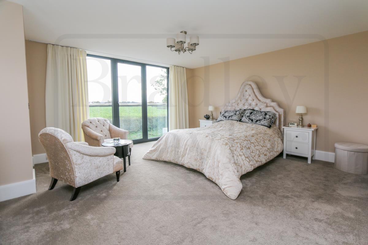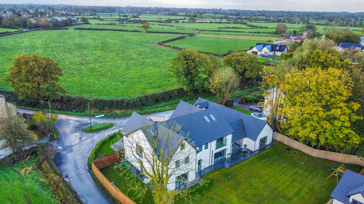 The use of full-height windows and extensive double glazing seamlessly connects the interior with the surrounding views. The location is simply stunning — surrounded by fields, it offers peace and tranquillity, yet remains within easy reach of motorway links and local shops. Situated in the hamlet of Eaves, it’s only a short walk to The Plough Inn. The garden is a fantastic size, large enough for the whole family to enjoy bright summer days. An expansive driveway lead to the three-quarter garage, providing plenty of parking for a large family.