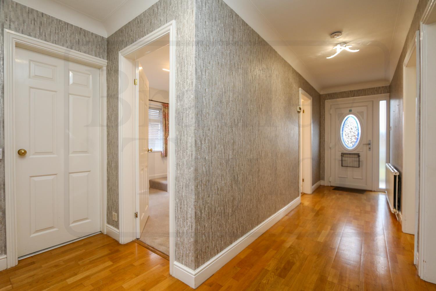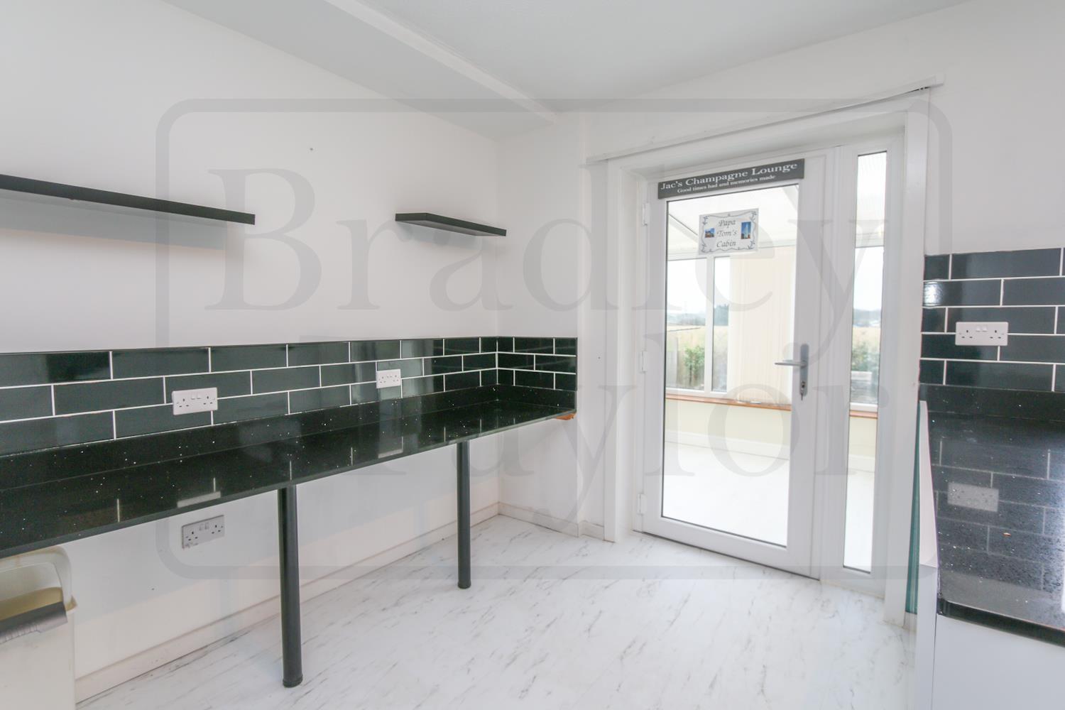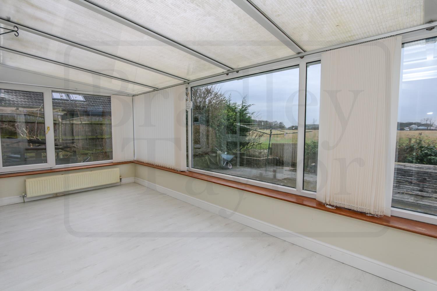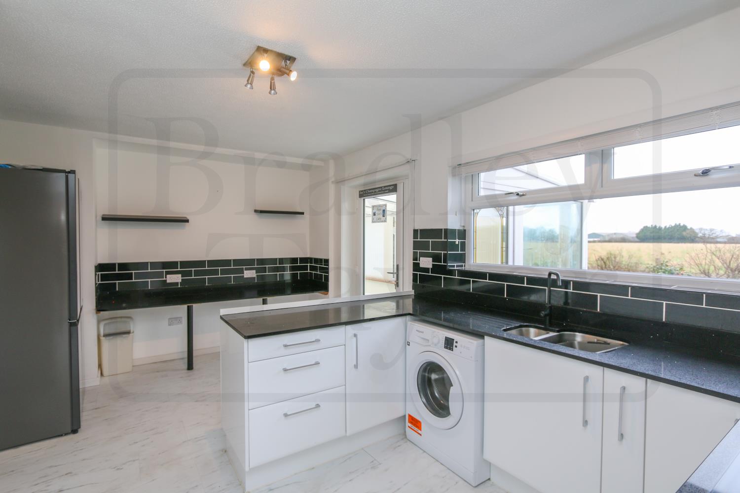 The property features four well-proportioned double bedrooms, with two conveniently located on the ground floor and two on the first floor, ideal for flexible living arrangements. The heart of the home is a modern fitted kitchen with ample storage and integrated appliances, opening into a dedicated dining area perfect for everyday meals and entertaining. A bright conservatory to the rear provides additional living space and enjoys pleasant views over the surrounding fields. The contemporary shower room is fitted with a stylish three-piece suite. Externally, a tandem garage runs the full depth of the bungalow, offering extensive storage or workshop potential, alongside off-road parking to the front.