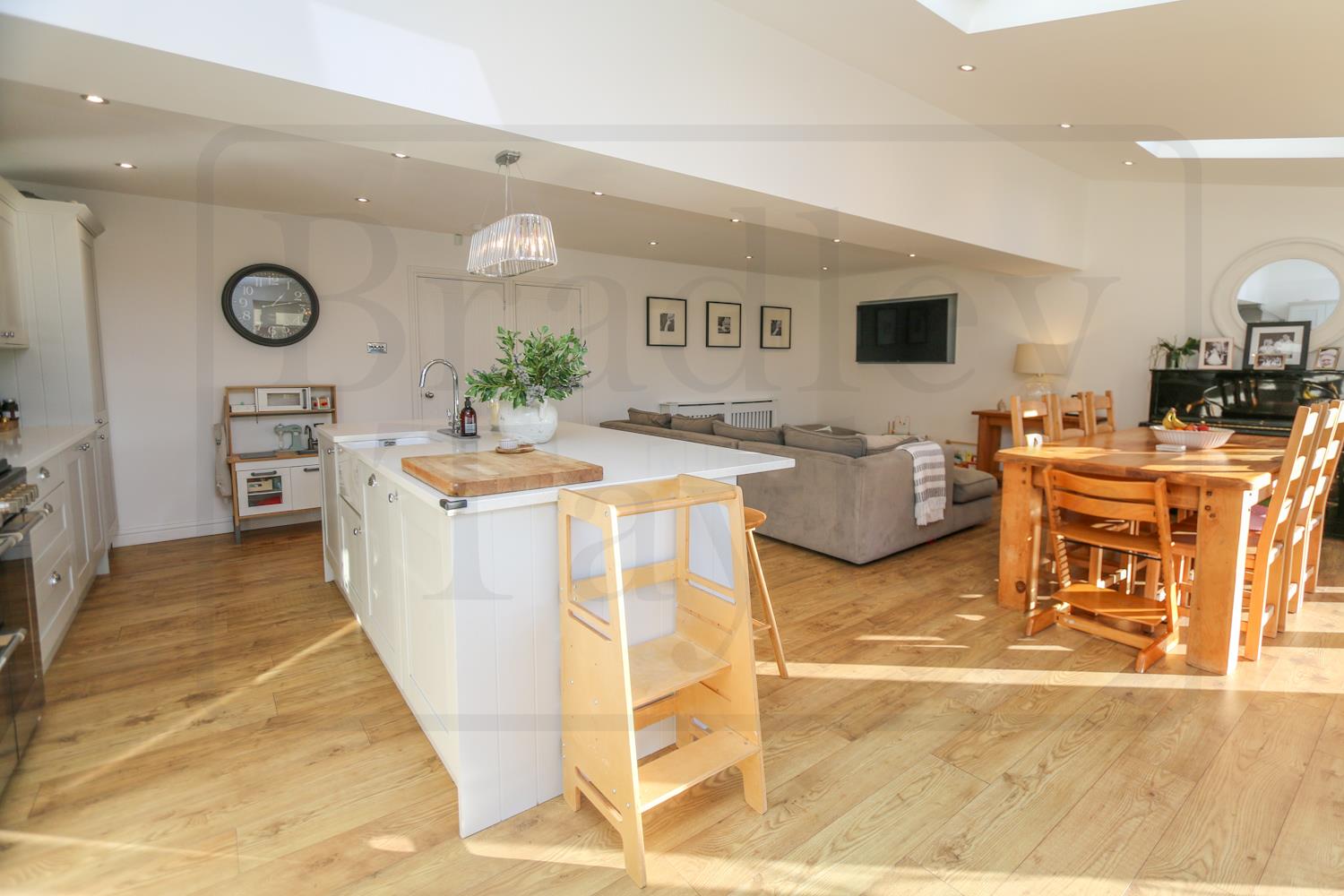 Finished to an impeccable standard throughout, this beautifully presented home is perfectly suited to modern family living. A separate front lounge provides a calm retreat for quieter moments, while the impressive rear extension forms the true heart of the home. Measuring approximately 8m x 6m, this bright and versatile open-plan family space is flooded with natural light from Velux windows and offers ample room for relaxing, dining and entertaining.