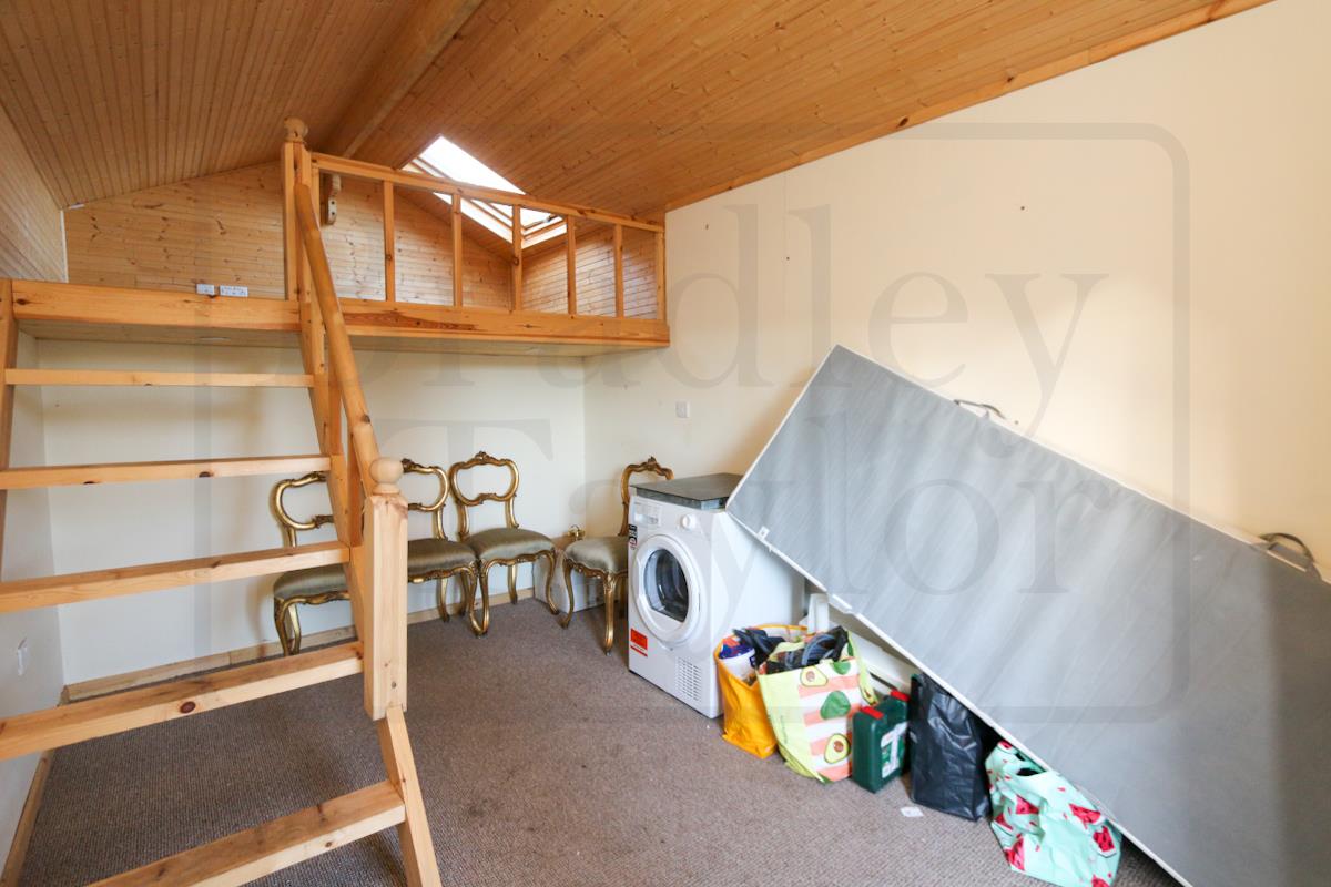 In excellent condition throughout, the property features a bright front lounge and an open-plan kitchen with dining space, ideal for modern living. Outside you’ll find a detached garden room and a well-maintained garden. Upstairs boasts two generous double bedrooms and a spacious third bedroom, all served by a modern 3 piece bathroom.