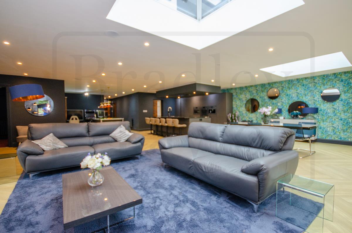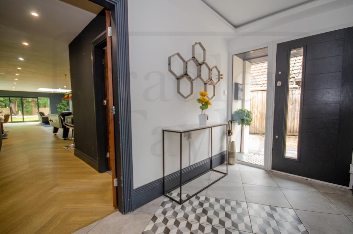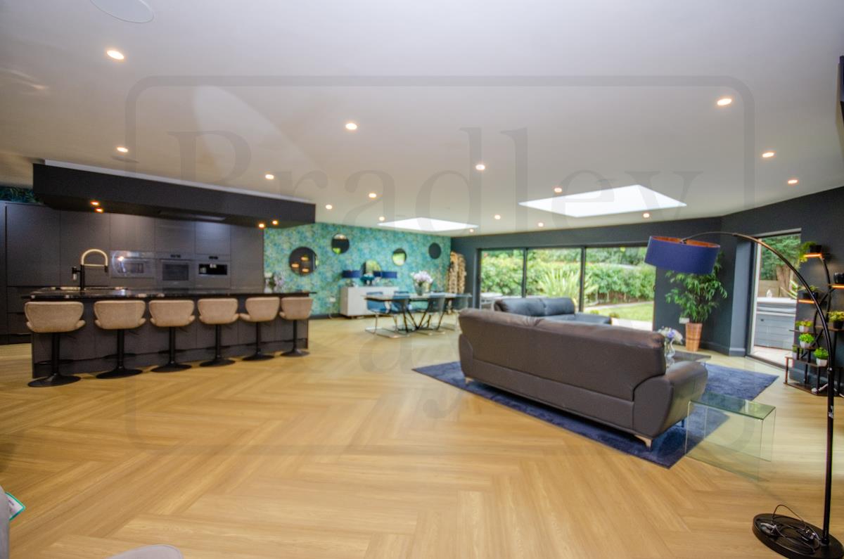 Inside, the property offers five well-proportioned bedrooms and three stylish bathrooms, providing comfort and convenience for the whole family. A large family room forms the heart of the home, featuring expansive sliding doors that open to the garden, seamlessly blending indoor and outdoor living. The property also boasts a dedicated cinema room, perfect for evenings at home and a modern kitchen that flows into the living spaces. The kitchen features Mielle appliances and marble worktop. The attention to detail and standard of the work is second to none. The large lanterns flood the extension with natural light creating the perfect space for entertaining or enjoying time with the family. The family room and main bedroom feature air conditioning, perfect for hot summers. The utility room is the size of your average kitchen, with an additional cooker, perfect for dinner parties. The family room and all bathrooms feature thermostatically controlled under floor heating. Planning has been granted for a full glass balcony accessed via the bi-fold doors in main bedroom. The en-suite bathroom incorporates a double jacuzzi bath and built in smart TV. Additional highlights include a garage, off-road parking, and an outbuilding offering versatile use. The house benefits from no chain.